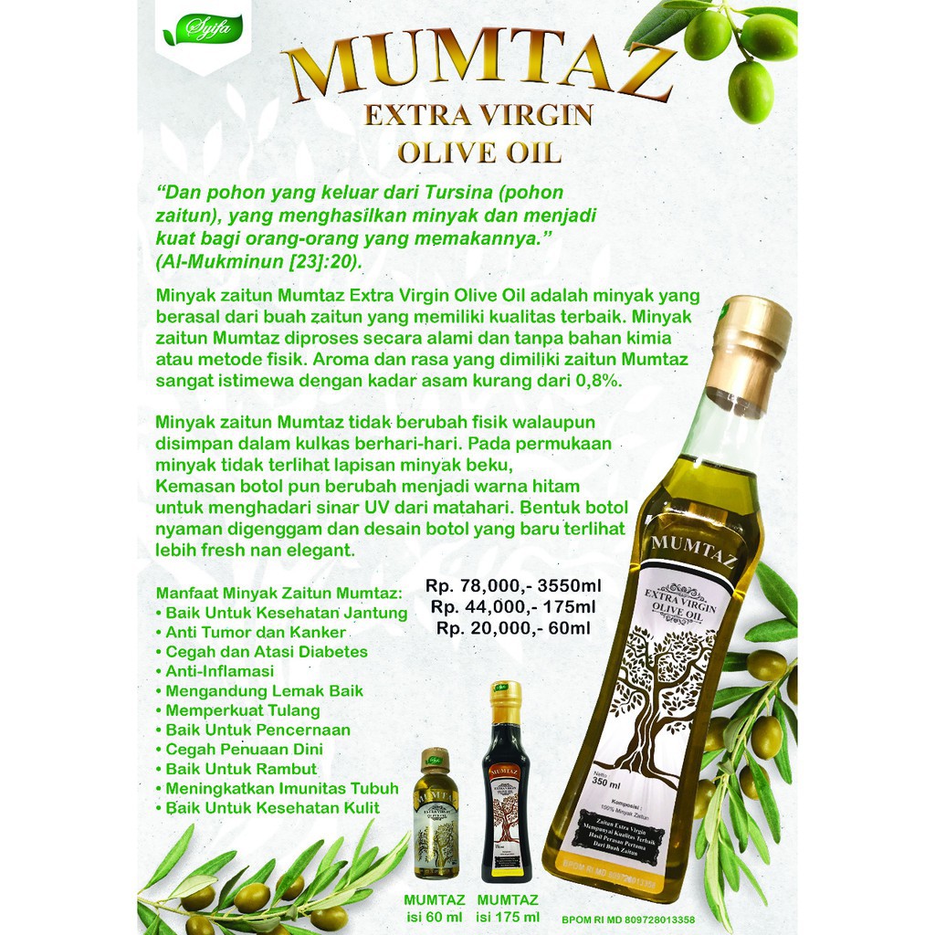 Jual Minyak Zaitun Mumtaz Extra Virgin Olive Oil Nutrisi Baik Untuk Kulit Wajah Minyak Zaitun Mumtaz 175 Ml Membantu Menghilangkan Batu Ginjal175ml Kemasan Baru Shopee Indonesia